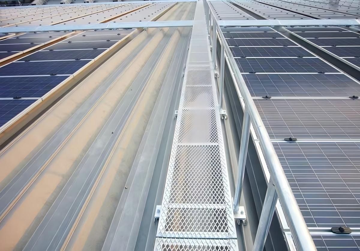 راهرو خورشیدی یک جزء خورشیدی بسیار رایج است که معمولاً برای تسهیل نگهداری بهتر از سیستم خورشیدی نصب می شود. همچنین بارها را از طریق راهروهای اختصاصی توزیع می کند تا از آسیب به لایه ضد آب یا نشت سقف ناشی از جابجایی مکرر پرسنل جلوگیری کند.