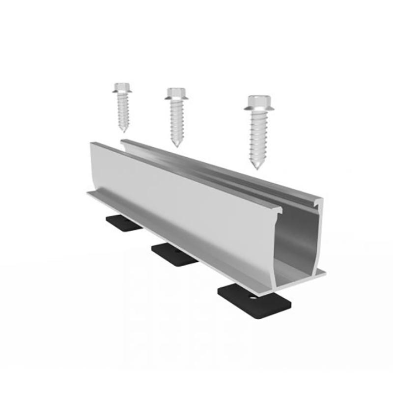 برای سقف های فلزی نازک (ضخامت 0.8-1.2 میلی متر)، نیازی به پیش حفاری ندارد. بدون آسیب رساندن به سقف، از طریق پیچ یا سگک بر روی قله های سقف ثابت می شود. یک پد لاستیکی EPDM در قسمت زیرین ریل با سطح موج دار متناسب است و پایداری و ضد آب بودن را تضمین می کند.
